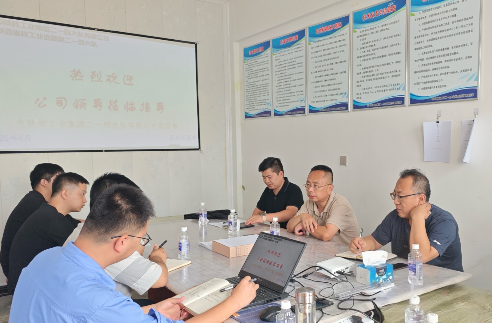 慰問結束后,付星一行與項目部人員召開座談會。會上,付星宣講了公司改革的核心政策,詳細闡述了公司未來的戰略規劃和發展方向,鼓勵項目部全體人員把握發展機遇,在實干中實現個人與企業的共同成長。隨后,項目部負責人從項目進度、人員培訓、安全生產、質量管控等方面作了詳細匯報。付星對項目部前期工作取得的成效給予了充分肯定,同時針對項目當前面臨的問題和挑戰提出了指導意見:一是以精益化管理為目標,完善項目部的建設;二是要細化工作,完成各個工作步驟的流程圖;三是以成果為導向,推進項目進展。