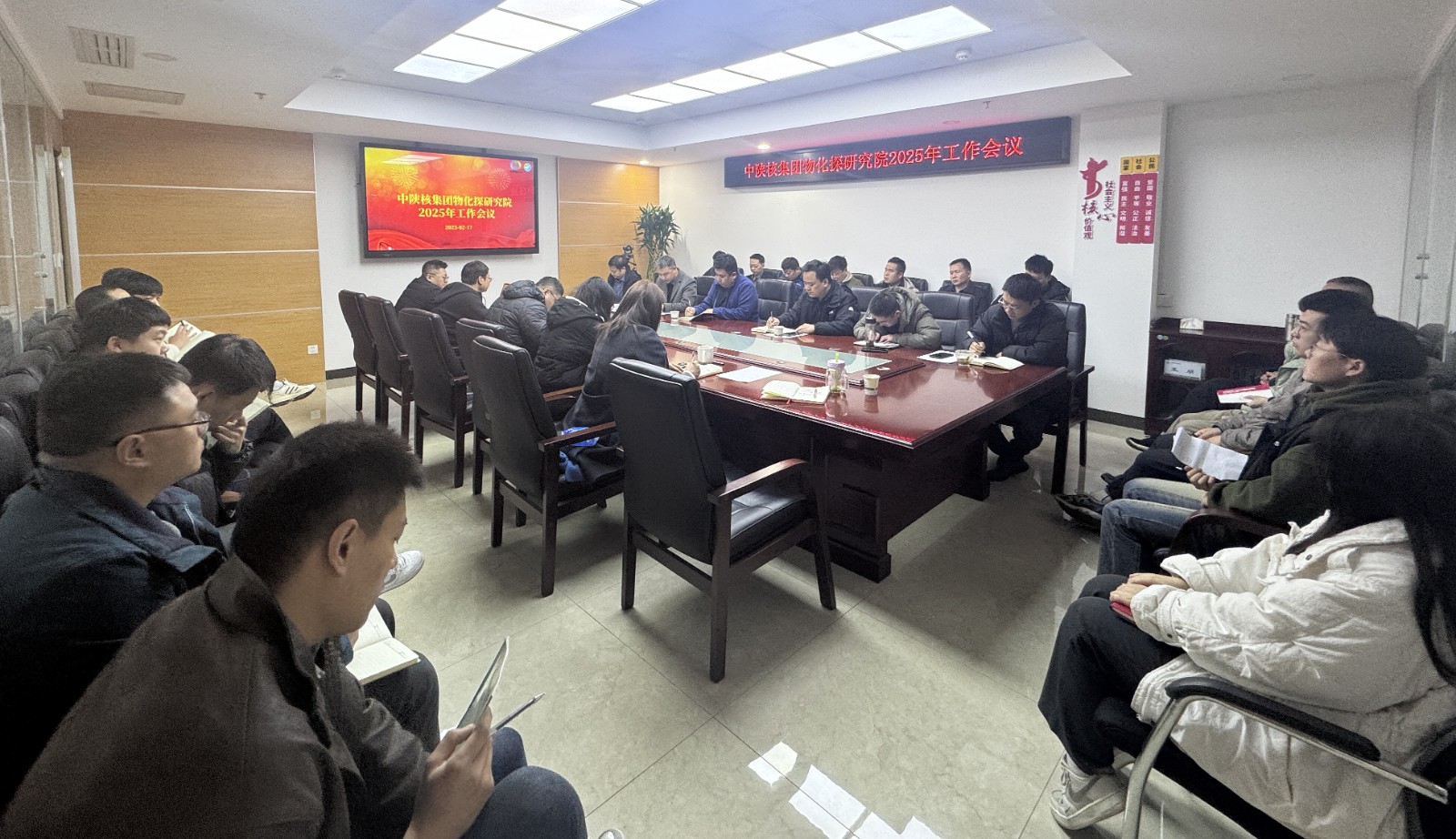 人勤春來早,奮進正當時。為全面部署新一年重點工作,動員全體干部職工以昂揚姿態開啟高質量發展新征程,公司物化探研究院于2月17日召開了2025年度工作動員會,會議由物化探院院長王漢民主持,物化探院全體職工參加了會議,公司黨委委員、總經理王朋蒞臨指導。