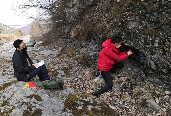 雖然已經(jīng)三月,秦嶺深山依舊寒冷,早晨的深山晨霧朦朧,也阻擋不了項目組成員奮進的腳步,水文組實施測水溫、測流速、測流量、調(diào)查泉眼;地質(zhì)組實施看巖性、測產(chǎn)狀、追構(gòu)造、做記錄。在項目組成員的積極努力下,各技術(shù)組方案的不斷協(xié)調(diào)優(yōu)化,為下步物探組工作的進行奠定了可靠的技術(shù)基礎(chǔ)。